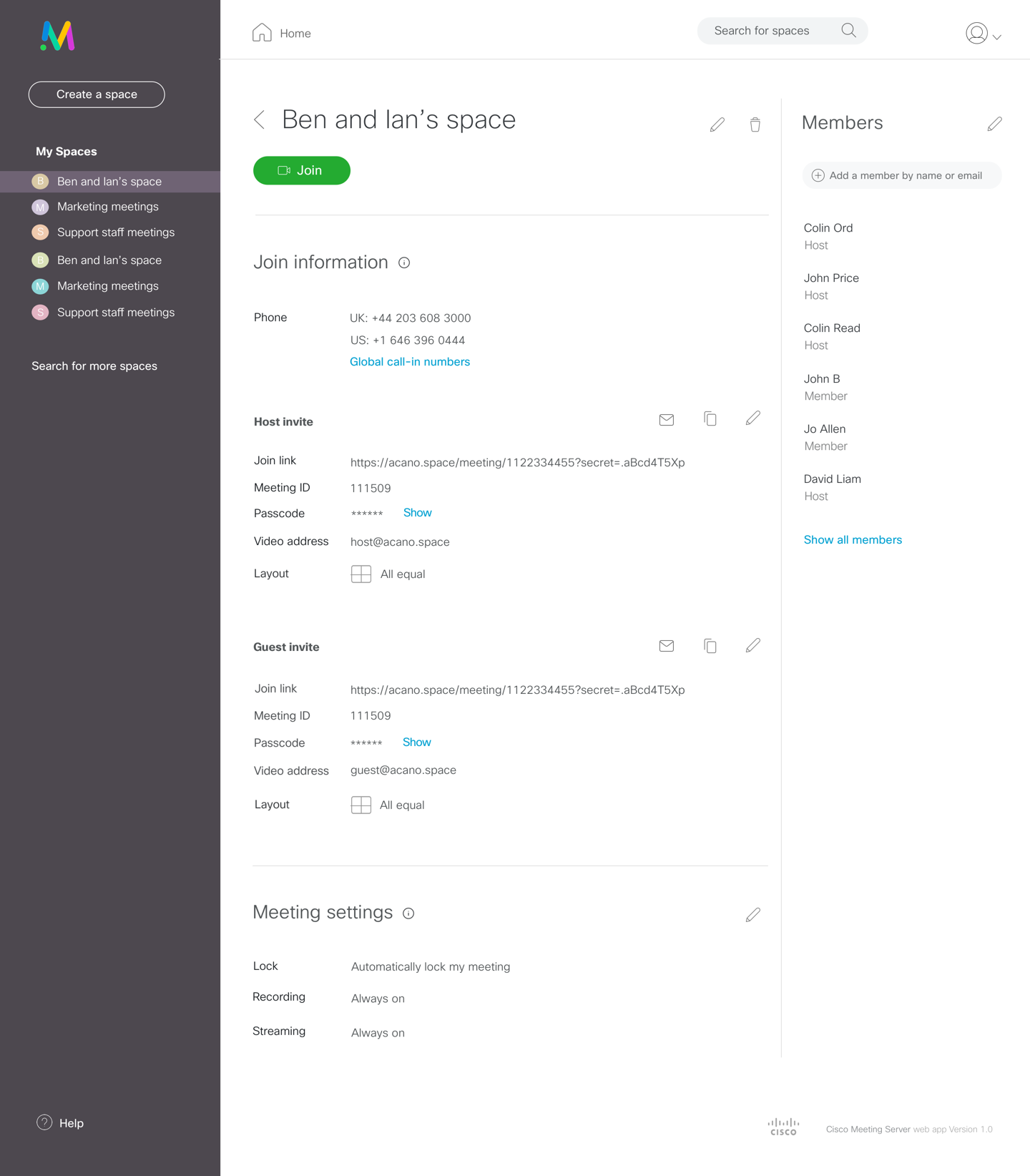 Cisco Meeting Server brings premises-based video, audio, and web communication. It works with third-party devices, and provides an enjoyable and intuitive user experience.