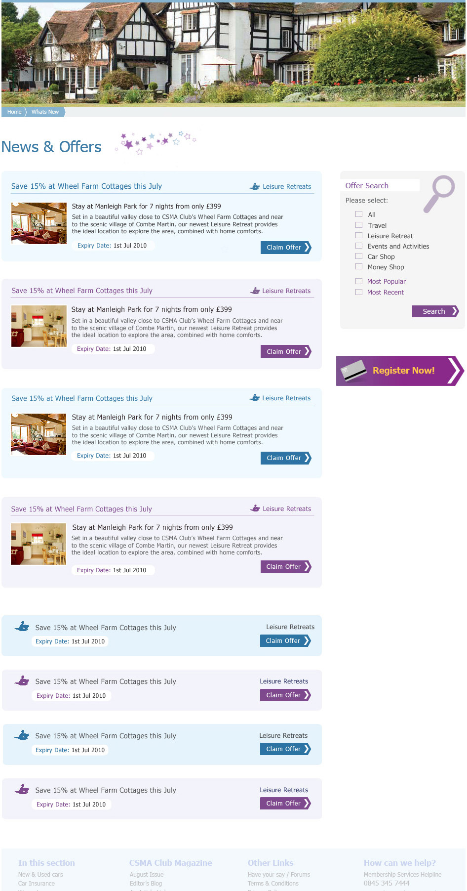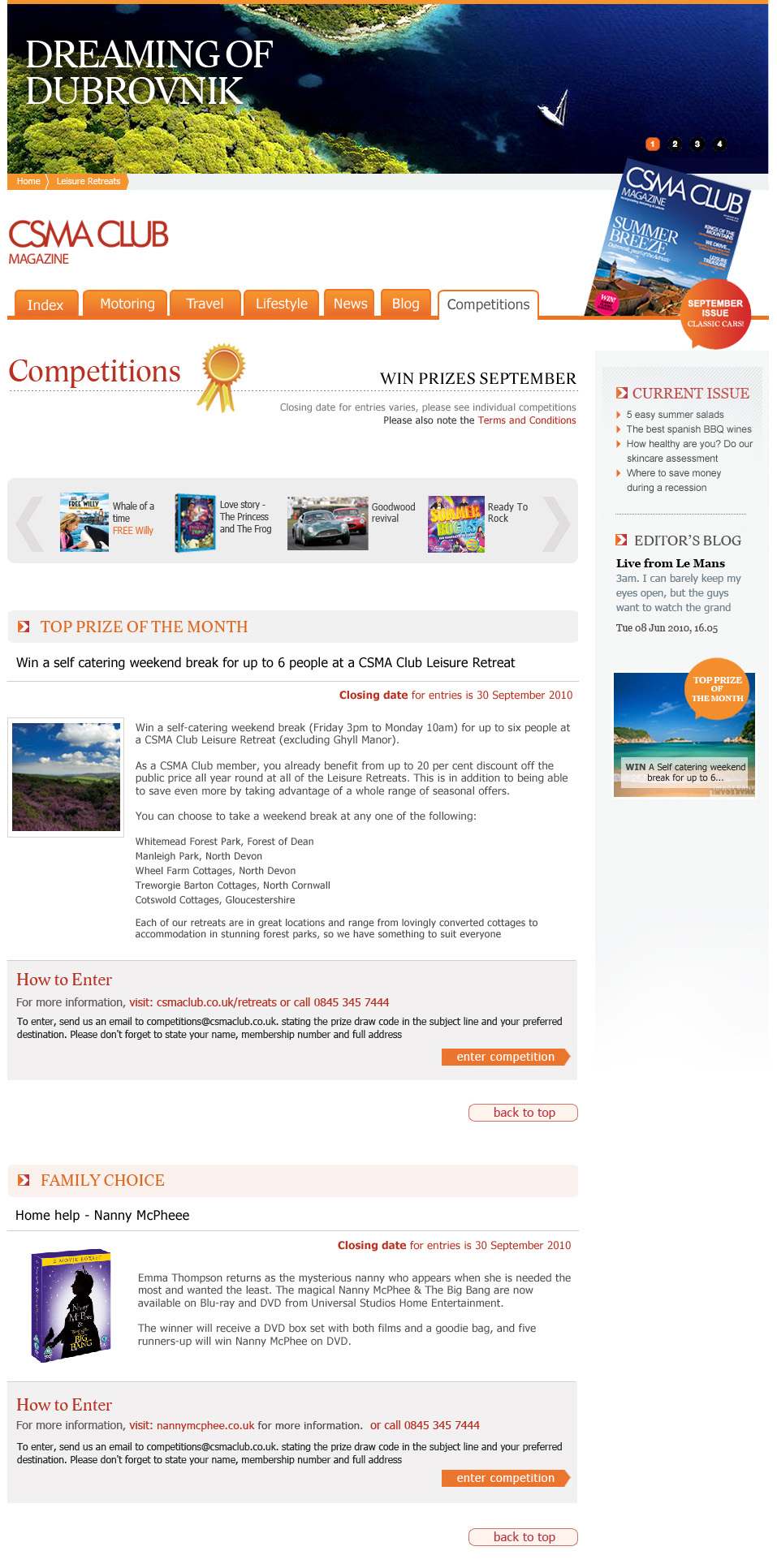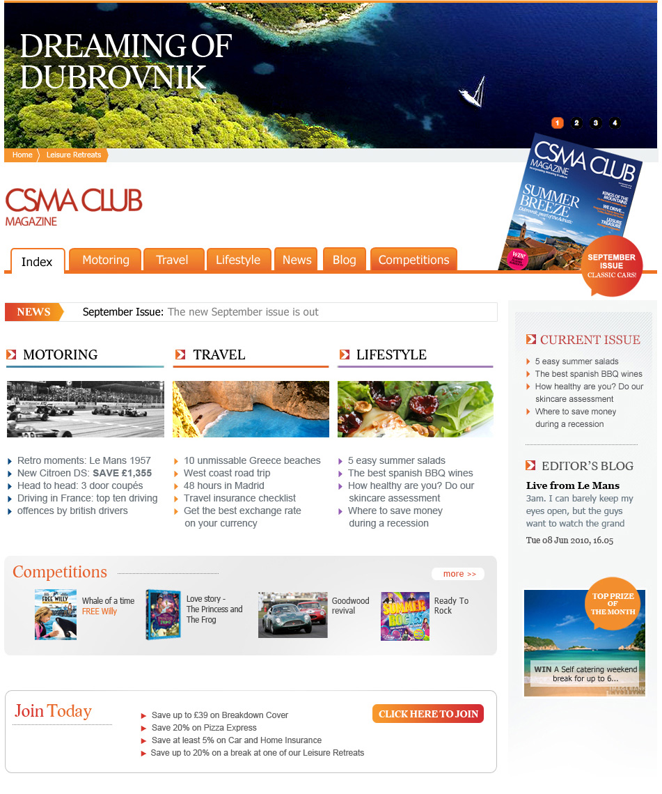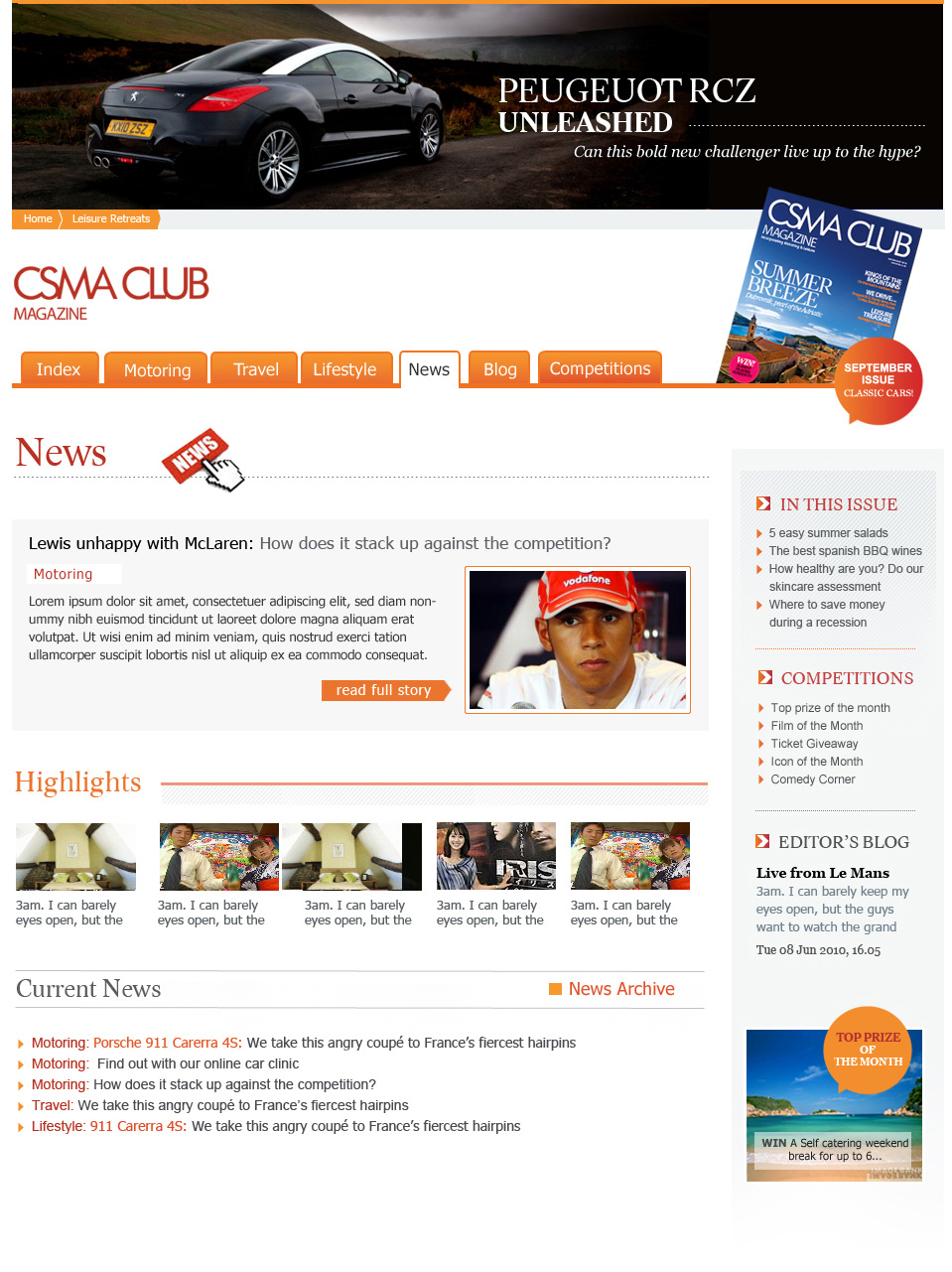 CSMA is the largest private home, motoring and leisure organisation in the UK. Gathering User Information and redesigning various sections like Magazine, Leisure Retreats, News & Offers and Competitions. Providing a list of suggestions on improving user experience and usability.